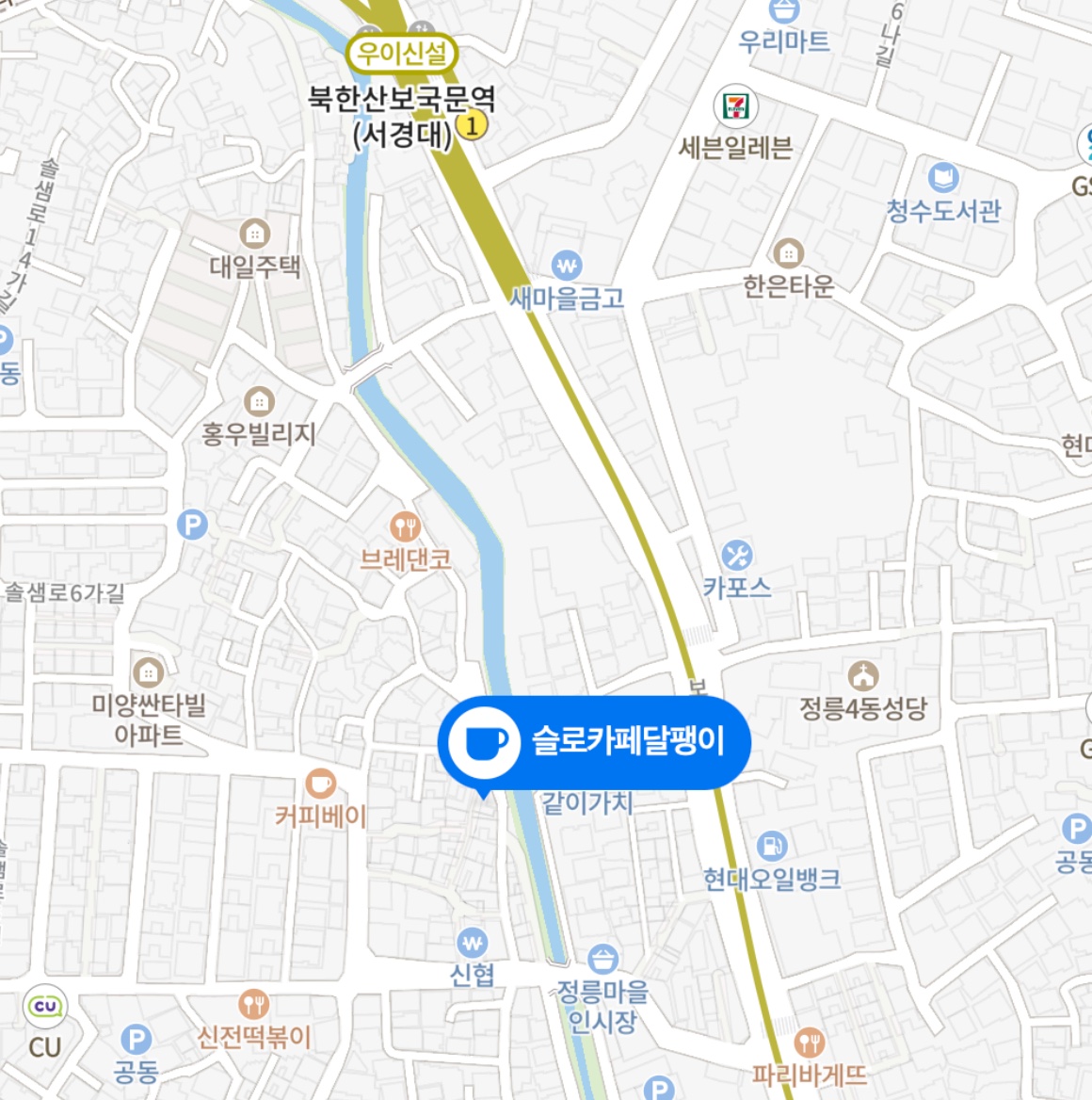 2023어반하이킹인서울의 종료지점은 서울시 성북구 정릉동의 슬로카페달팽이입니다.